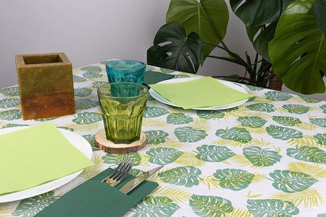 Mantel Papel 100x100cm Blanco Deco. Monstera, 400uds (Retractilado y codificado)