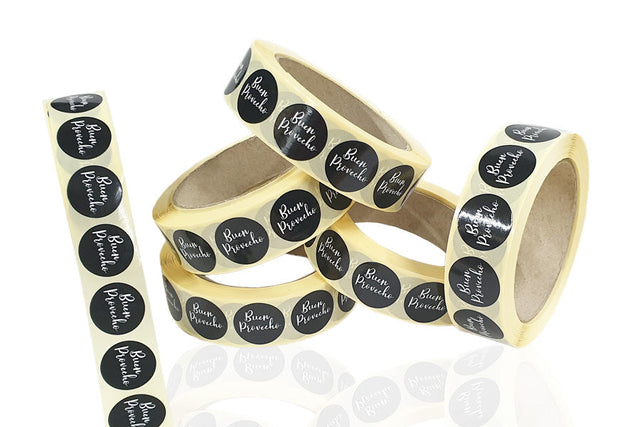 Etiqueta Circular 25x25mm Buen Provecho, 1.000uds (Especial Bolsa Portacubiertos)