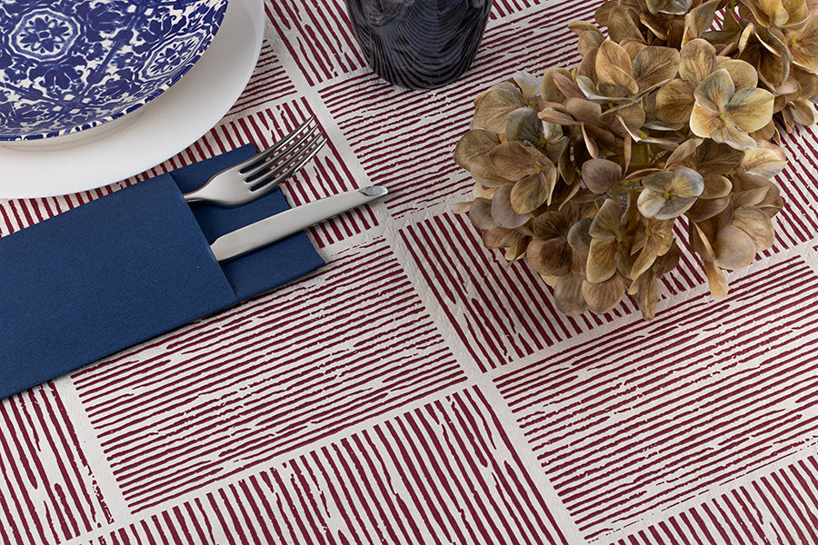 Mantel Papel 100x100cm Blanco Deco. Kaito Burdeos, 400uds (Retractilado y codificado)